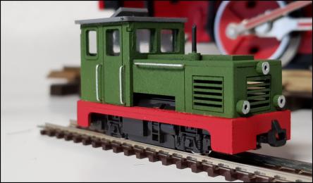 Der kleine zweiachsige Diesel ist aus MDF